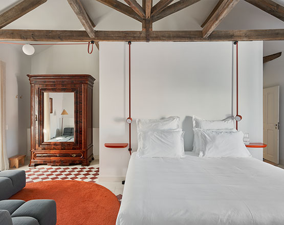 Bedrooms at Casa Fortunato are not just a place to lay your head, albeit on high thread count Portuguese cotton bedding. The six suites are roomy and light and invite you to unwind, with smooth wooden floors, a white-on-white colour palette, walk-in rain showers and the ultimate homely comfort – windows that open. The original, restored shutters and wooden ceilings are accented in creamy taupe green and flashes of colour come from the minds of our creative designer-owners: brightly hued woven rugs collected from their travels, a Foscarini Filo table lamp here, a Patricia Urquiola for B&B Italia sofa there. Rest assured at Casa Fortunato you are in the hands of design professionals who reside in the sweet spot between homely and eclectic.